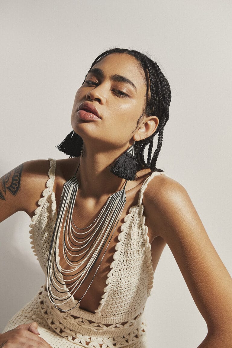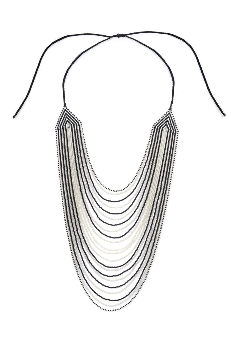The Long Woven Bead Necklace is a vibrant and unique jewel that combines the artisanal technique of weaving with high quality beads, creating an elegant and eye-catching accessory.