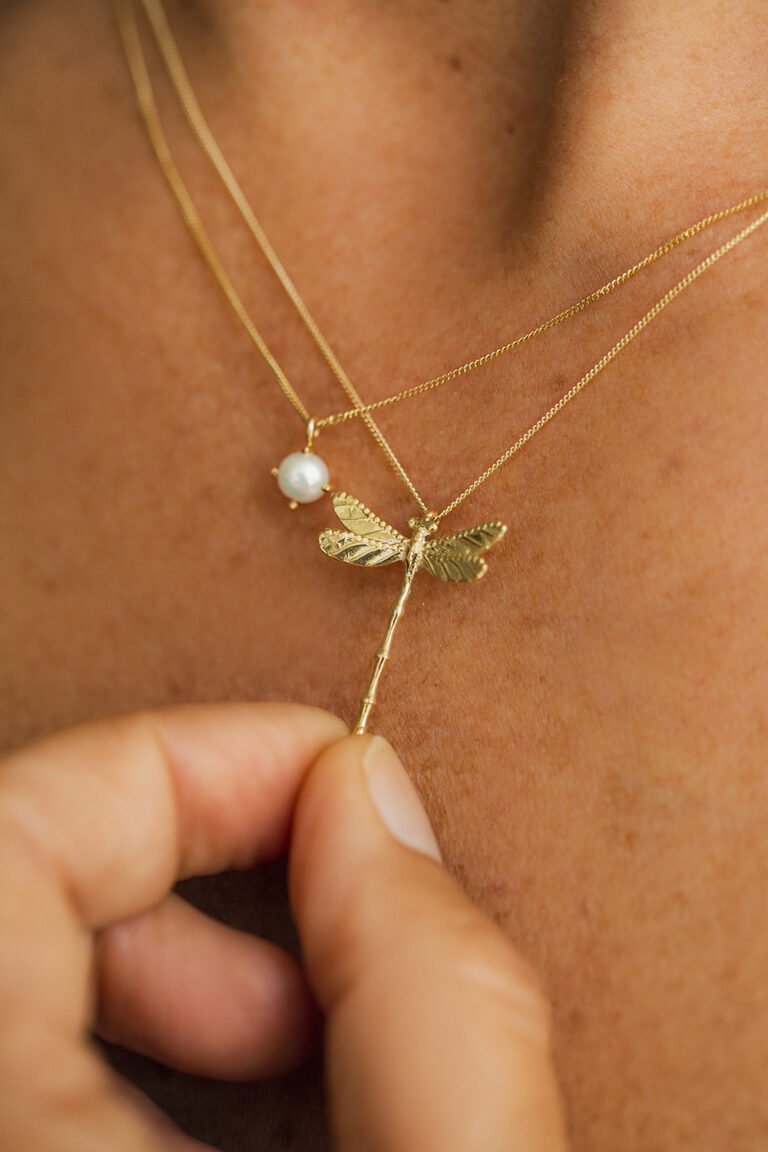 Discover the Dragonfly Necklace, a jewel that combines elegance and a charming design. This necklace features a delicate dragonfly-shaped pendant, symbolizing transformation, freedom and joy.