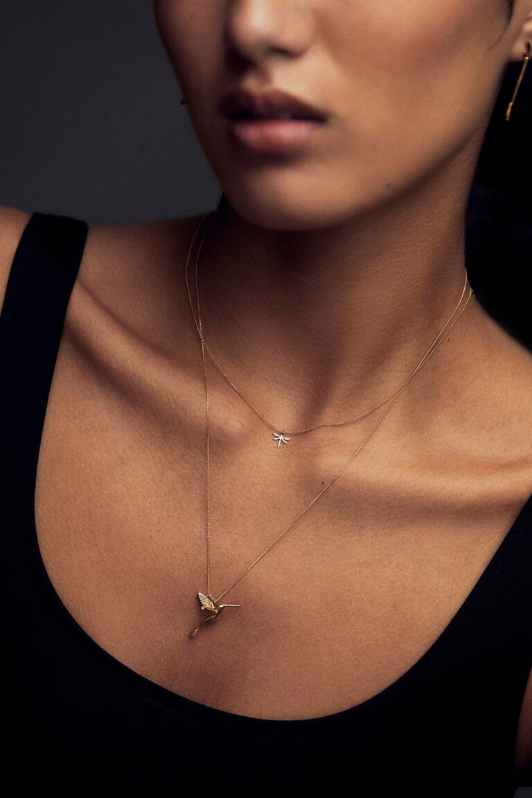 The 18kt Gold Small Dragonfly Necklace is a timeless jewel that combines elegance and symbolism.