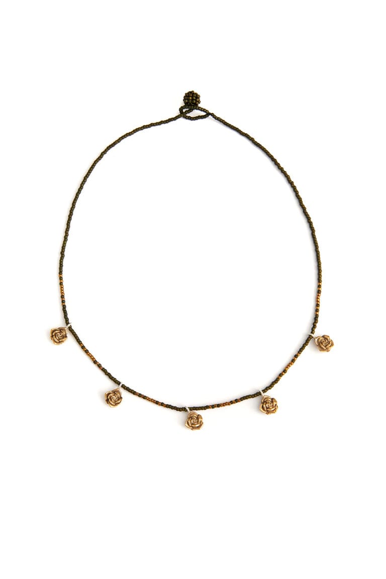 Necklace with several bronze charms and Toho #15 beads, inspired by the Echeveria Lola succulents.