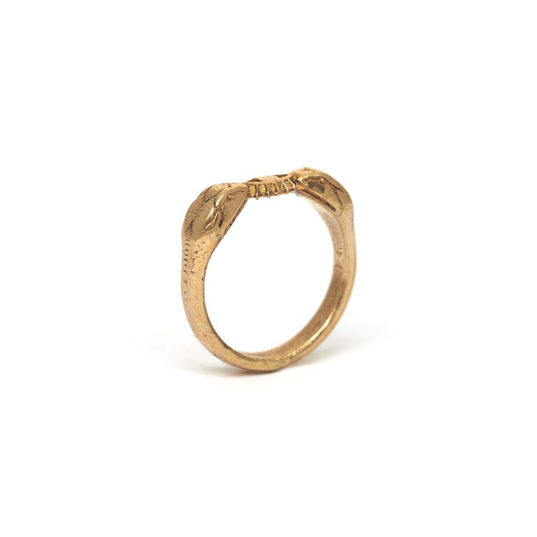 Anillo serpiente de dos cabezas mordiendo un ojo en bronce