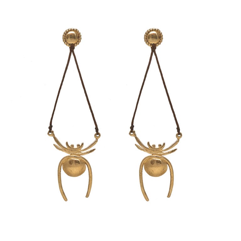 Arete araña en bronce con cordón de satín.