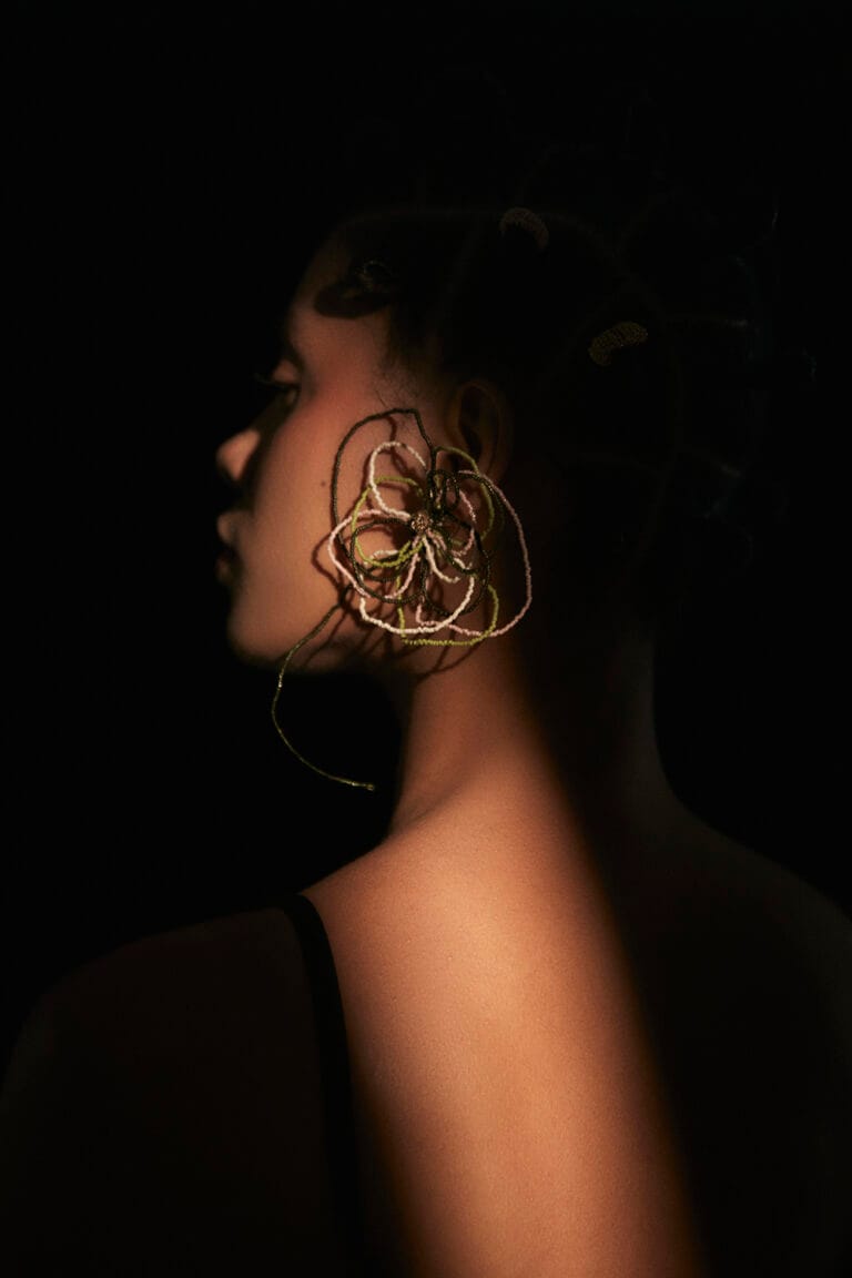 Arete representando la paleta de color de las suculentas, tejido en mostacillas toho#15 con hilo de acero y base de plata.