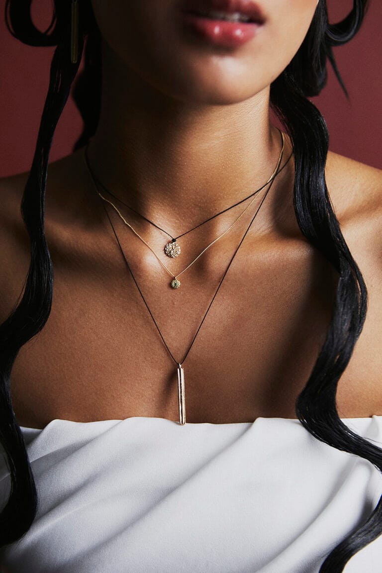 Collar dije en forma de suculenta euphorbia en bronce, con cordón de satín.