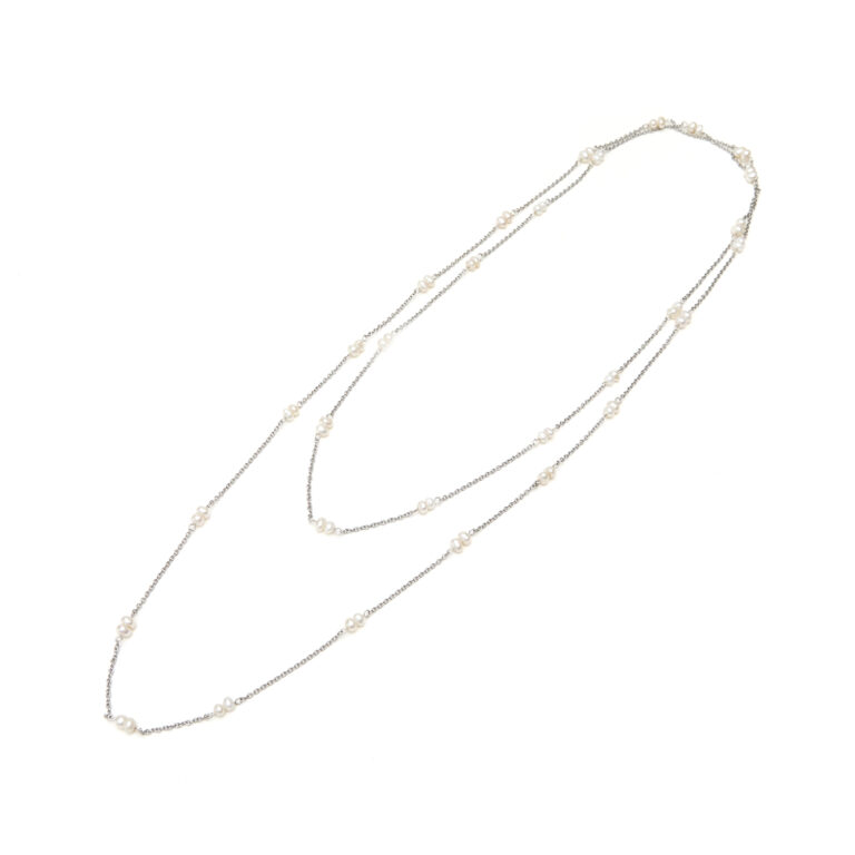 Collar de cadenas de brass y perlas de agua dulce de formas orgánicas Largo 132 cm