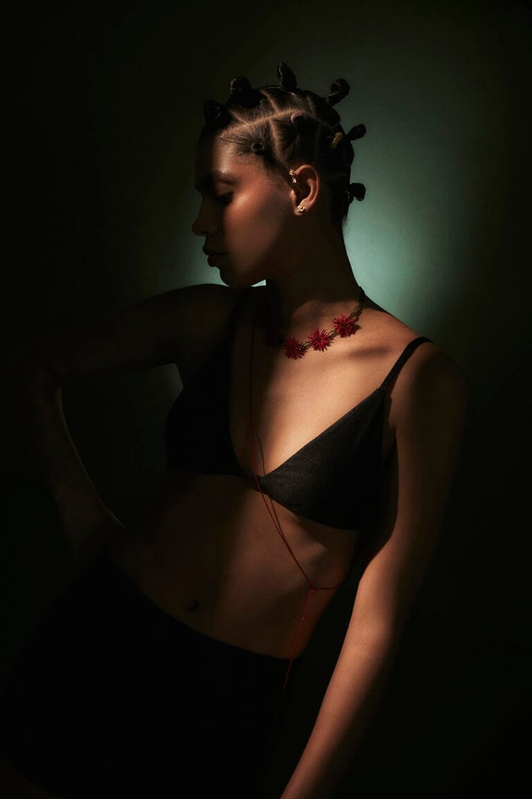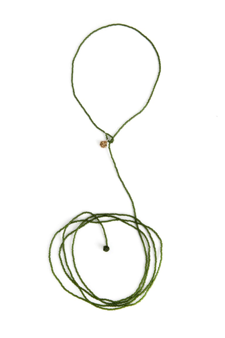 Collar tira de mostacillas toho #15 larga, con dije de bronce inspirado en la suculenta Echevaria Lola.