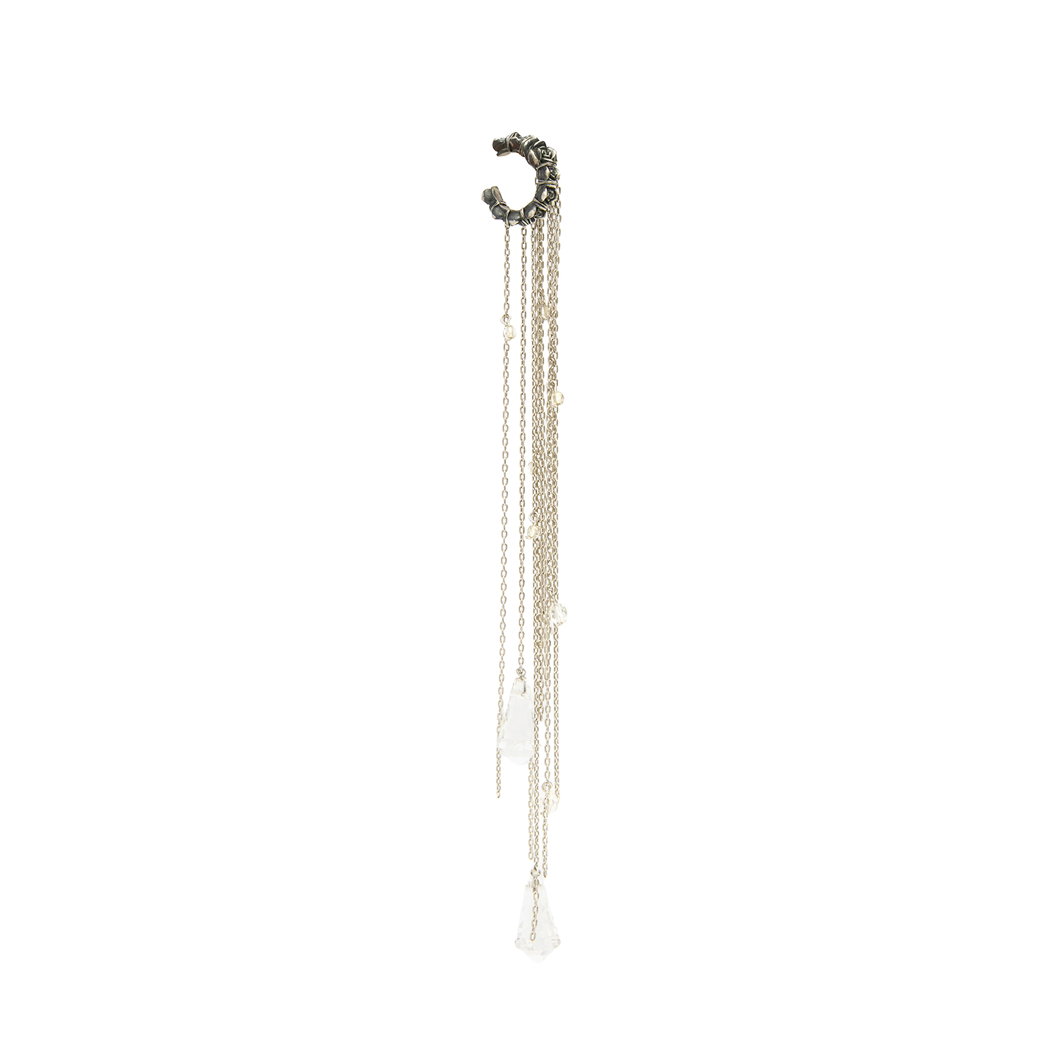 Ear cuff en plata quemada, en plata 925, con cadenas de brass y cuentas y lagrimas de cristales checos . Largo : 16.5 cm