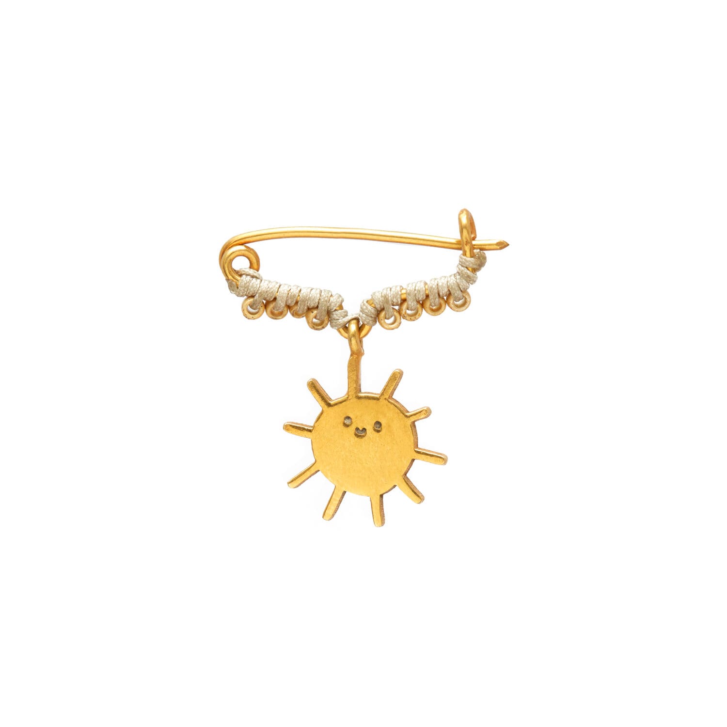 Prendedor con dije sol en plata bañado en oro y tejido con mostacillas